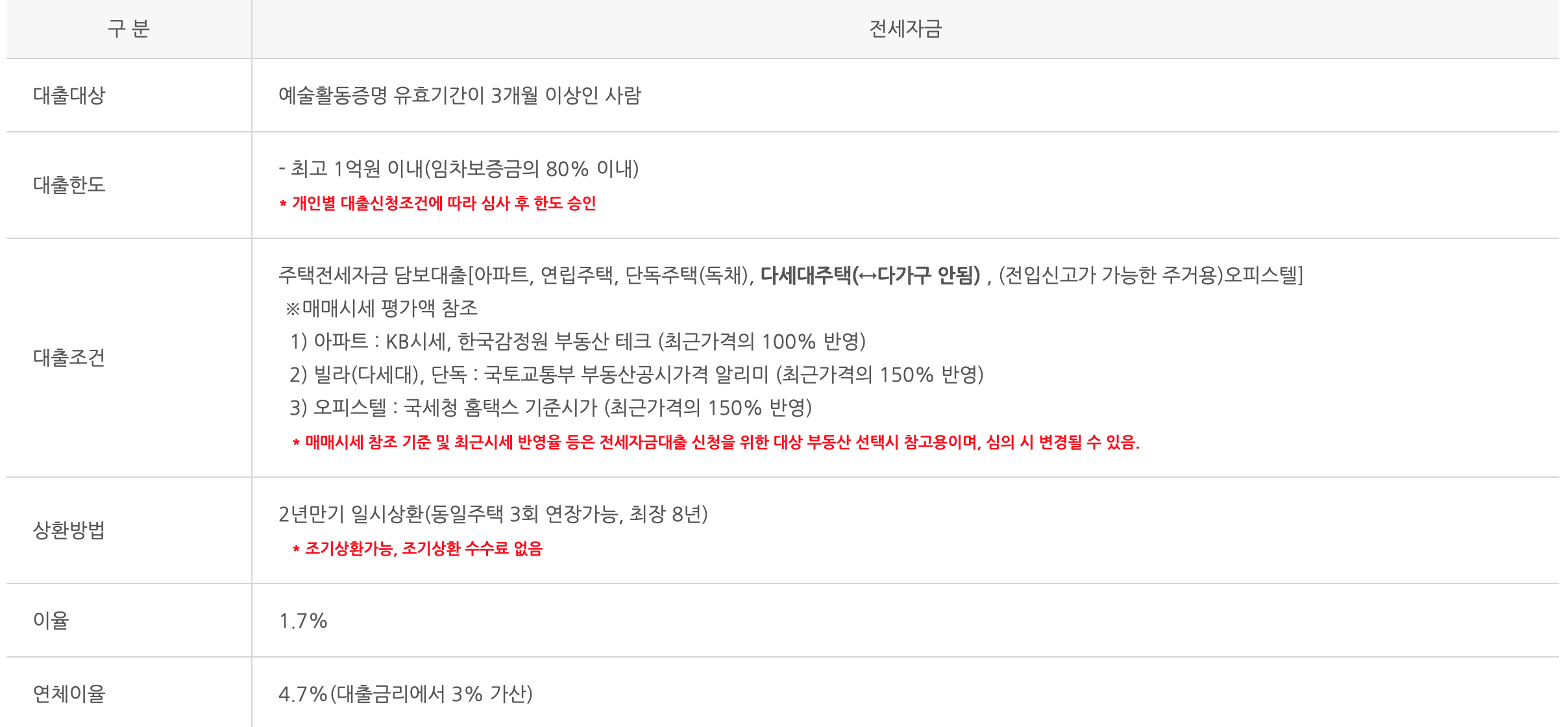 2. 전세자금 대출 : 최대 1억 원(이율 1.7%) 대출 가능 단 임차보증금의 80% 이내