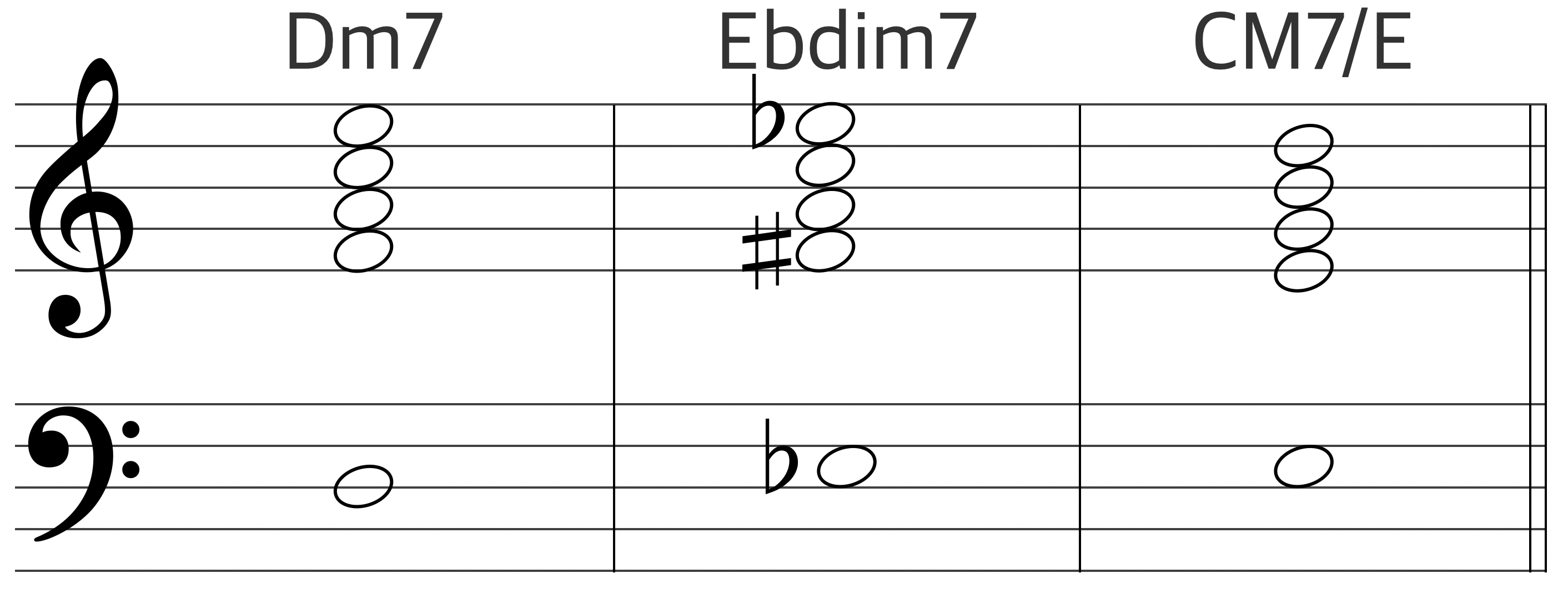 또한 앞서 Diminished에서 예를 들었듯이, 화음을 구성하고 있는 구성음을 베이스로 내려 연주하는 것도 많이 사용한다.