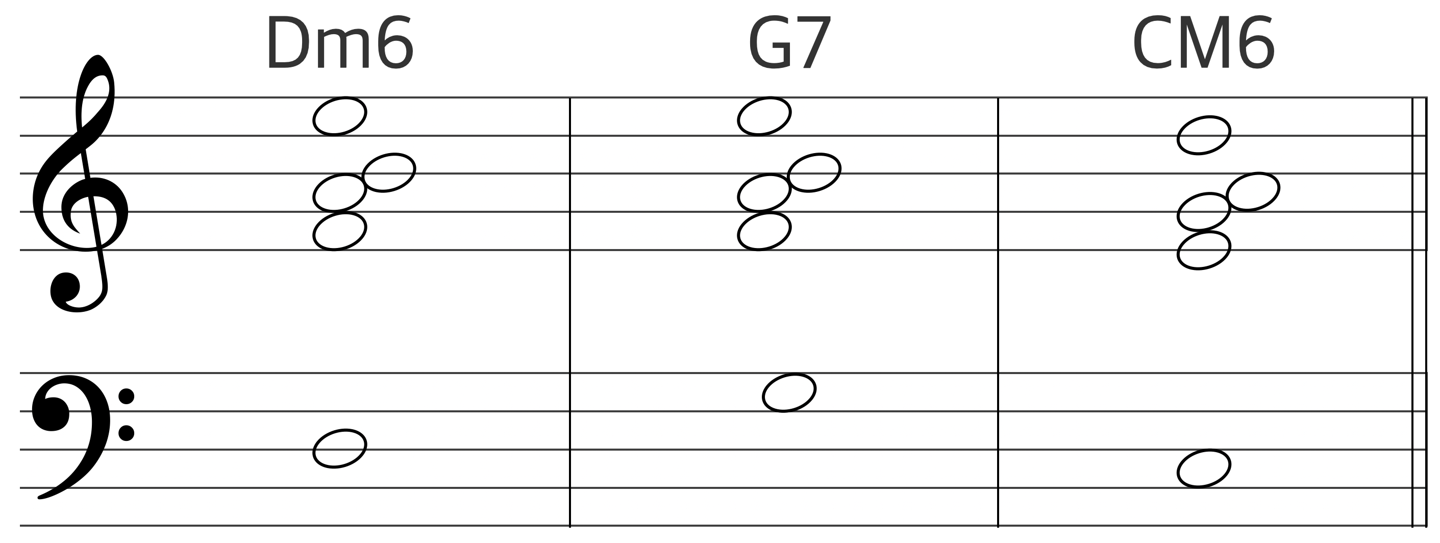Dm7을 Dm6로, CM7을 CM6로 바꾸어 연주하면 미묘한 음색의 변화를 줄 수 있다.