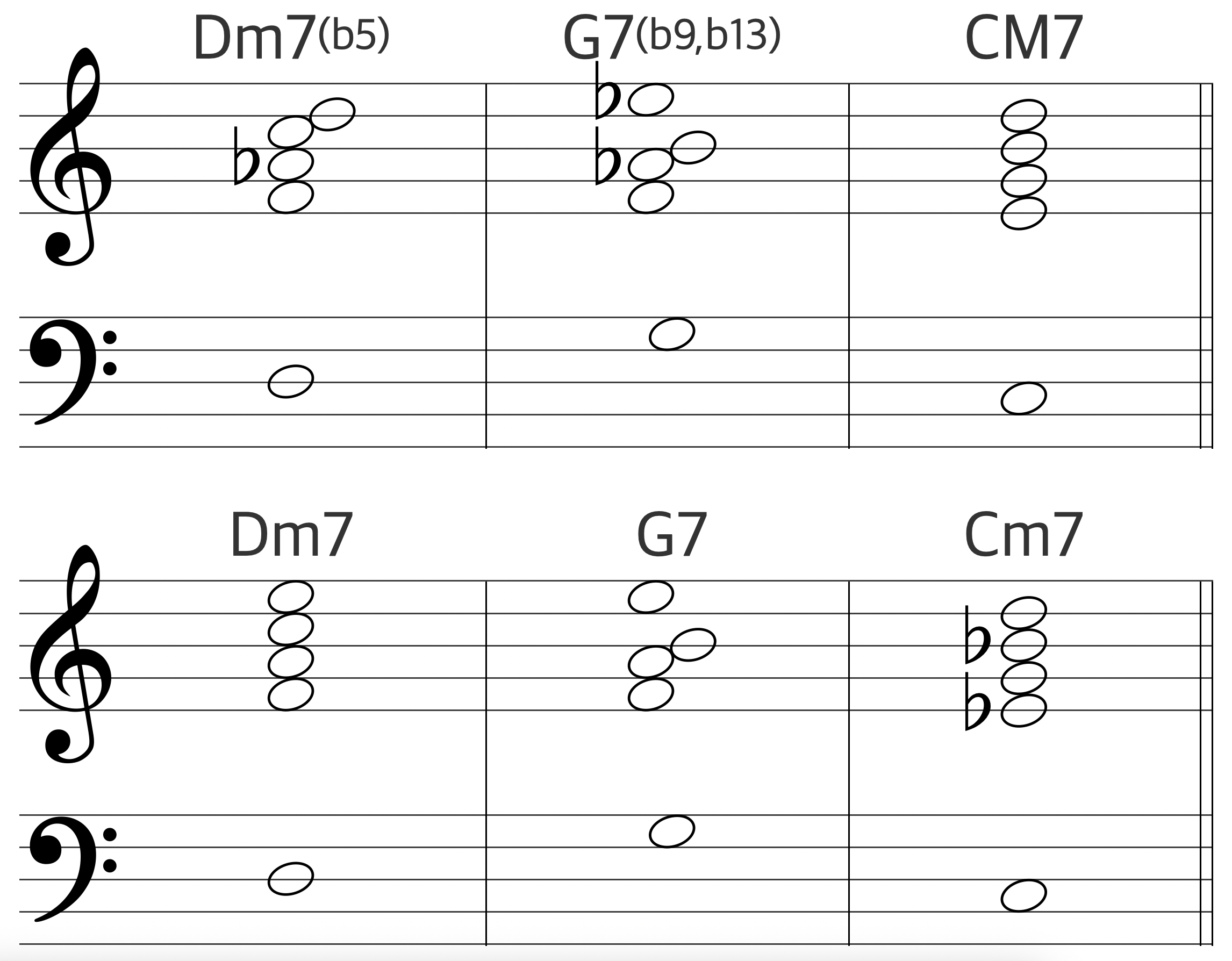 II-V-I 코드진행애서 가장 흔하게 사용되며 뼈대가 되는 텐션에 변화를 주어 미묘한 사운드의 변화를 줄 수 있다. 기본적인 보이싱의 구조를 모른다면 먼저 아래 글을 숙지하는것을 추천한다.