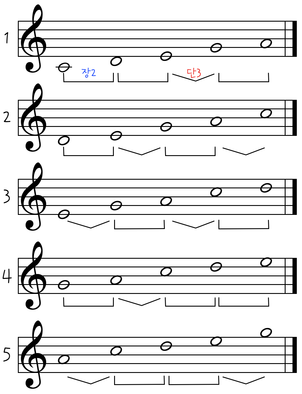 5도권에 의한 구조로 나온 5음계 즉 펜타토닉은 5가지 구조로 분석해볼 수 있다.